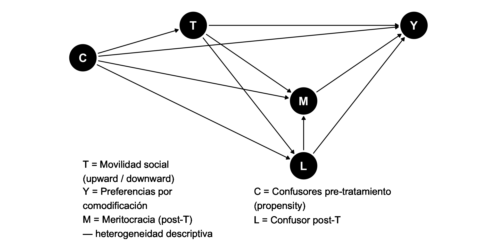 Bien, y cómo entra la creencia meritocratica en este diagrama de hipotesis y DAG causal entonces?